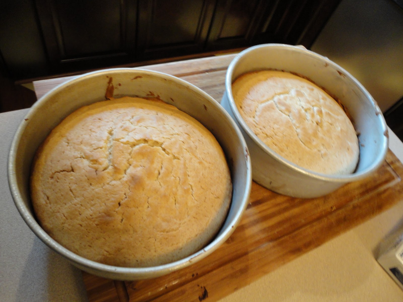 notice the light colored cake pans--
